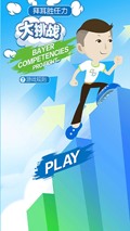 首页是一个身着拜耳LOGO服装的卡通小人做全市状,点击“PLAY”后进入游戏,游戏页通过点击页面进行人物的左右跳转,用户要收集能量(即核心胜任力)并且躲 避障碍,当八个能量球收集完毕后使右通过此关卡,进入第二关,第二关同第一关一样要收集八个能量球,在游戏上加大了难度(加速)收集完毕,游戏通关。