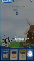 首页是一次双手高举的奶牛,上方飘来的若干病毒,加上牧场背景,点击任意外便进入了游戏,游戏页首先出现的是游戏引导,以便让用户更加轻松地完成游戏,游戏 方式是通过观察病毒上方的颜色点击相应的奶粉罐来消灭病毒,在消灭病毒的过程中旁边的奶滴会进行充能,充能完毕后便可释放大招消灭屏幕上的所有病毒,大招释 放完毕后会出现品牌的宣传海报,在游戏结算页面用户可以查看分数、排行以及分享到朋友圈。